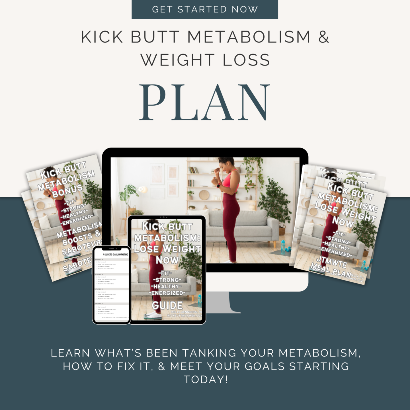 This Kick Butt Metabolism & Weight Loss Plan is an entire system - a Guide, Just Tell Me What to Eat Meal Plan, Supplement Guide & Exercise Program. You'll meet your goals!