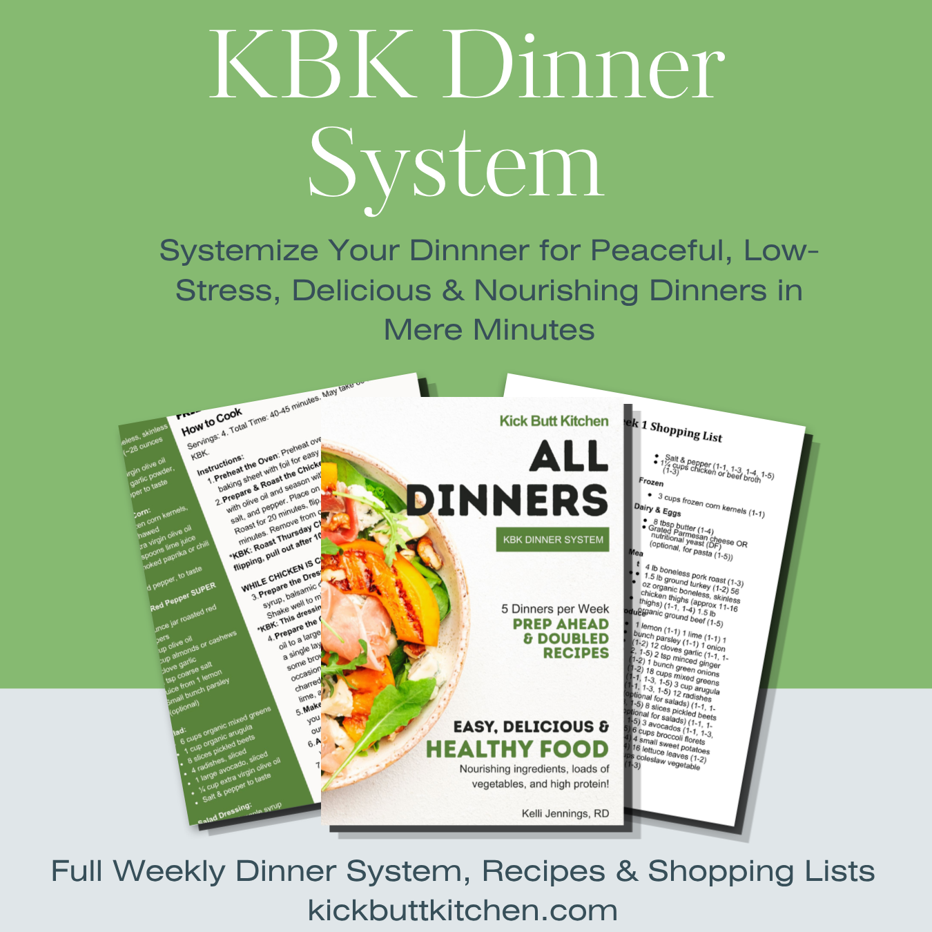 Let's go! You're about to Kick Butt in the Kitchen and take names. Feed your people wonderfully delicious and nourishing dinners they love while gaining hours back & enjoying peaceful evenings. Ready to join me?